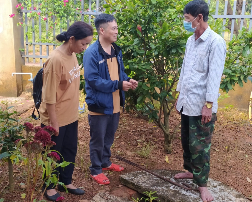 Đoàn kiểm tra, hướng dẫn nhân dân cách khử nước giếng bị ngập và hỗ trợ thuốc khử trùng nước cho nhân dân