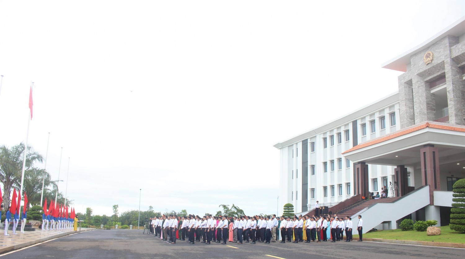 Sáng nay 1-8, Huyện ủy- HĐND- UBND- UB MTTQ VN huyện Phú Riềng long trọng tổ chức Lễ thượng cờ kỷ niệm 07 năm thành lập huyện Phú Riềng (1/8/2015-1/8/2022). Đúng 7 giờ sáng, tại khuôn viên trụ sở Trung tâm hành chính huyện, TUV, Bí thư Huyện ủy Nguyễn Thị Xuân Hòa; Phó Bí thư Huyện ủy, Chủ tịch HĐND huyện Nguyễn Quốc Soài; Phó Bí thư, Chủ tịch UBDN huyện Phú Riềng Lê Anh Nam cùng lãnh đạo Huyện ủy- HĐND- UBND- UB MTTQ VN, toàn thể cán bộ, công chức, viên chức, người lao động huyện Phú Riềng đã nghiêm trang hát ngân vang bài Quốc ca hùng tráng, Nghi thức thượng cờ bắt đầu, ngọn cờ tổ quốc từ từ được kéo lên đỉnh kỳ đài. Trong niềm phấn khởi, tự hào tại Lễ Thượng cờ, TUV, Bí thư Huyện ủy Nguyễn Thị Xuân Hòa bày tỏ: Cán bộ, nhân dân huyện nhàrất biết ơn sự quan tâm của Tỉnh ủy- HĐND-UBND- UBMTTQVN tỉnh. Sự giúp đỡ của các ban, ngành, đoàn thể, các tổ chức, doanh nghiệp, mạnh thường quân trong và ngoài huyện đã chung tay, góp sức giúp Phú Riềng được như ngày hôm nay. Đồng chí khẳng định, chặng đường phía trước đang mở ra cho huyện Phú Riềng nhiều thời cơ, thuận lợi nhưng cũng không ít khó khăn. Do đó, hơn bao giờ hết, cán bộ, nhân dân huyện nhà phải biết vận dụng thời cơ, nhận thức đúng thực lực, phát huy thế mạnh vốn có, đặc biệt là xây dựng tinh thần đoàn kết, thống nhất trong toàn Đảng bộ, khơi dậy sức mạnh, sự đồng lòng trong nhân dân để Phú Riềng vững bước trong tương lai. Đoàn diễu hành tiến vào lễ Đài. Nghi thức thượng cờ bắt đầu. TUV, Bí thư Huyện ủy Nguyễn Thị Xuân Hòa phát biểu tại Lễ Thượng cờ. Lễ Thượng cờ diễn ra trang nghiêm.