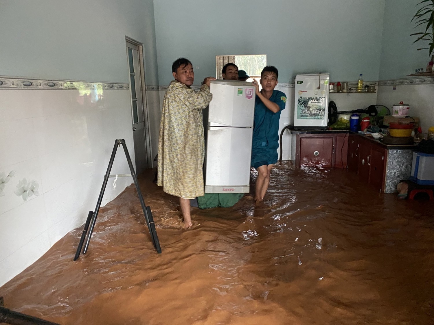 Phó Chủ tịch UBND huyện Phú Riềng Lê Văn Chung cùng lãnh đạo Ban Chỉ huy quân sự huyện, các phòng ban chuyên môn đã trực tiếp đến các khu vực bị ngập nắm bắt tình hình, chỉ đạo các lực lượng thực hiện nhiệm vụ hỗ trợ người dân.