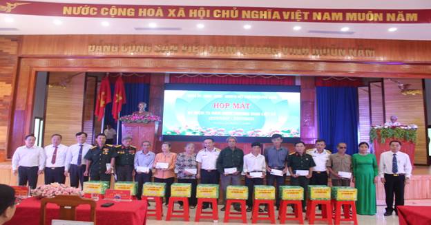 Đó là yêu cầu của đồng chí Nguyễn Thị Xuân Hòa, TUV, Bí thư Huyện ủy đối cấp ủy, chính quyền, MTTQ và các đoàn thể CT-XH từ huyện đến cơ sở tại buổi họp mặt kỷ niệm 75 năm ngày Thương binh - Liệt sỹ (27/7/1947 – 27/7/2022) vào sáng nay 26-7. Tham dự có Thượng tá Nguyễn Hồng Chinh – Phó Chính ủy Lữ đoàn 955, Bộ Tư lệnh vùng 4 hải quân; Nguyễn Quốc Soài – Phó Bí thư thường trực Huyện ủy; Lê Anh Nam, Phó Bí thư Huyện ủy, Chủ tịch UBND huyện; Bùi Văn Hiếu, UV BTV, Phó Chủ tịch UBND huyện, Trưởng ban tổ chức họp mặt kỷ niệm; lãnh đạo huyện, các xã cùng 75 thương binh, bệnh binh, người có công, gia đình liệt sỹ, người có công với cách mạng tiêu biểu của huyện về dự. Phát biểu tại buổi họp mặt, UVBTV-Phó Chủ tịch UBND huyện Phú Riềng Bùi Văn Hiếu cho biết: Trên địa bàn huyện Phú Riềng có 17 mẹ Việt Nam anh hùng được phong tặng và truy tặng, 275 liệt sĩ, 176 thương binh, 55 bệnh binh và 278 đối tượng là người có công, thân nhân liệt sĩ đang được hưởng trả trợ cấp hàng tháng và khoảng 2.000 đối tượng người có công hưởng trợ cấp 1 lần. Những năm qua huyện Phú Riềng đã thực hiện đầy đủ, kịp thời các chính sách ưu đãi của nhà nước giành cho người có công như giải quyết tốt hồ sơ chính sách cho người có công; chi trả kịp thời trợ cấp hàng tháng, trợ cấp 1 lần; cấp đầy đủ bảo hiểm y tế cho người có công, thân nhân người có công… theo quy định. Từ năm 2015 đến nay, huyện hỗ trợ xây dựng 17 căn nhà tình nghĩa, sửa chữa nhà cho 47 hộ người có công cấp phát trên 2.600 thẻ BHYT cho người có công và thân nhân người có công. Đồng chí Nguyễn Thị Xuân Hòa – TUV, Bí Thư Huyện ủy khẳng định: Thấm nhuần đạo lý "Uống nước nhớ nguồn", "Ăn quả nhớ người trồng cây", Đảng bộ, chính quyền và Nhân dân huyện Phú Riềng đã không ngừng nỗ lực có những việc làm thường xuyên, trách nhiệm và nghĩa tình; hết lòng chăm lo đời sống vật chất và tinh thần của Thương binh, bệnh binh, gia đình liệt sĩ và người có công với cách mạng trên địa bàn huyện. Từ đó, tạo sức lan tỏa, khơi dậy và bồi đắp những giá trị nhân ái của mỗi người con quê hương Phú Riềng anh dũng. Cấp ủy, chính quyền, MTTQ và các đoàn thể CT-XH từ huyện đến cơ sở xác định việc chăm lo, thực hiện chính sách ưu đãi đối với người có công là bổn phận, nhiệm vụ thường xuyên, lâu dài của cả hệ thống chính trị và toàn xã hội. Quan tâm gia đình người có công có hoàn cảnh khó khăn, các gia đình người có công ở vùng đồng bào dân tộc thiểu số, không để hộ người có công thuộc diện hộ nghèo. Chú trọng giải quyết các vướng mắc, tồn tại liên quan đến thực hiện chính sách; đảm bảo chặt chẽ, thấu tình, đạt lý để những người có công và gia đình người có công được thụ hưởng đầy đủ các chính sách của Đảng và Nhà nước. Tiếp tục làm tốt công tác tu bổ, tôn tạo các công trình ghi công liệt sĩ; đẩy mạnh tìm kiếm, xác định danh tính liệt sĩ, quy tập hài cốt liệt sĩ, kịp thời thông báo và tạo điều kiện thuận lợi để thân nhân liệt sĩ được hỗ trợ đi thăm viếng. Biểu dương, tôn vinh những tấm gương thương binh, bệnh binh, gia đình liệt sĩ, người có công có ý chí tự lực, tự cường, vượt khó vươn lên, tham gia các phong trào thi đua yêu nước. Dịp này, Lữ đoàn 955 – Bộ Tư lệnh vùng 4 Hải quân gửi tặng 10 phần quà đến các thương binh, bệnh binh, gia đình liệt sĩ, người có công trên địa bàn huyện. UBND huyện đã biểu dương, khen thưởng 11 tập thể, các cá nhân tiêu biểu trên địa bàn huyện. Đồng thời, huyện cũng trao tặng quà tới tất cả thương binh, bệnh binh, gia đình liệt sĩ và người có công tham dự buổi họp mặt. Các đại biểu tham dự buổi họp mặt Biểu dương, khen thưởng 11 tập thể, các cá nhân tiêu biểu trên địa bàn huyện Lữ đoàn 955 – Bộ Tư lệnh vùng 4 Hải quân gửi tặng 10 phần quà đến các thương binh, bệnh binh, gia đình liệt sĩ, người có công trên địa bàn huyện. Đồng chí Nguyễn Thị Xuân Hòa, TUV, Bí thư Huyện ủy và Chủ tịch UBND huyện Lê Anh Nam trao tặng quà các đại biểu tham dự