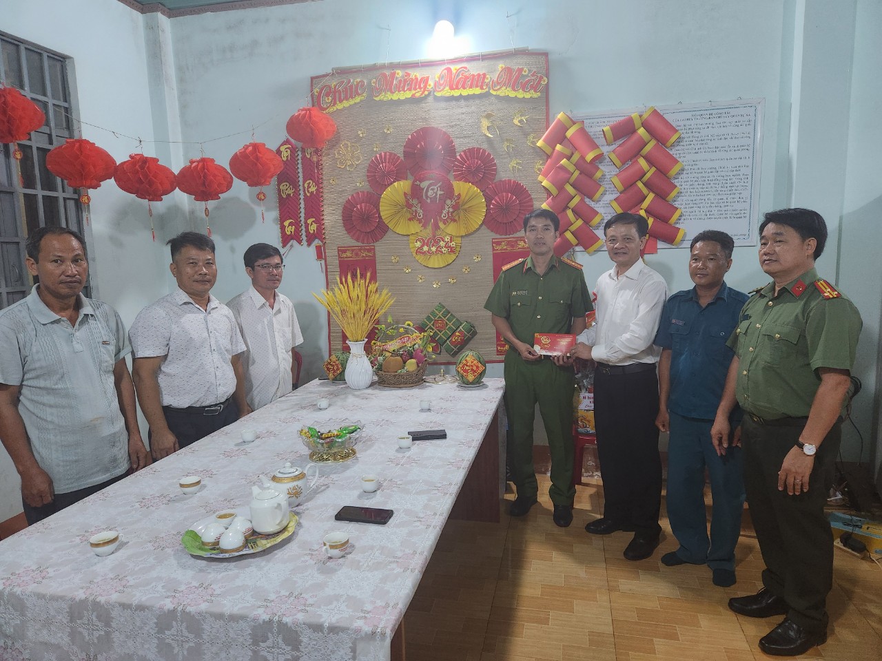 Khuya 9-2, chuẩn bị bước vào thời khắc giao thừa, Phó Bí thư, Chủ tịch UBND huyện Lê Anh Nam cùng lãnh đạo Công an huyện đã đến các xã trên địa bàn để nắm tình hình và động viên lực lượng Công an, Quân sự làm nhiệm vụ trong những ngày tết Nguyên đán Giáp Thìn 2024. Đoàn đã đến kiểm tra, nắm tình hình tại các xã: Long Hưng, Bình Tân, Bình Sơn, Phước Tân, Bù Nho, Phú Riềng. tại đây, lãnh đạo huyện đã chúc Tết địa phương, kiểm tra công tác phân công lực lượng trực ban; lực lượng tuần tra kiểm soát đảm bảo an ninh trật tự, an toàn giao thông; phòng chống pháo nổ... ở các địa phương, bên cạnh đó đề nghị các địa phương phải thường xuyên túc trực, sát sao nắm tình hình, kịp thời xử lý các tình huống phát sinh ngay từ cơ sở, đảm bảo các hoạt động vui xuân, đón tết của nhân dân diễn ra an toàn, lành mạnh.Chủ tịch UBND huyện Lê Anh Nam tham và động viên các xã trên địa bàn huyện Phú Riềng tập trung lực lượng đảm bảo ANTT giúp người dân vui xuân đón tết. Qua kiểm tra, các xã đã thực hiện nghiêm túc công tác phân công cán bộ và huy động toàn bộ lực lượng Công an, Quân sự làm nhiệm vụ trong đêm giao thừa, chú trọng phân công các lực lượng tuần tra, làm nhiệm vụ tại các vị trí trọng điểm, đảm bảo tình hình ANTT và nhất là công tác phòng chống pháo nổ trong đêm giao thừa, để nhân dân đón tết vui tươi, đầm ấm và an toàn. Dịp này, lãnh đạo huyện Phú Riềng cũng có những phần quà động viên các lực lượng làm nhiệm vụ đêm giao thừa và dịp tết Nguyên đán Giáp Thìn 2024.
