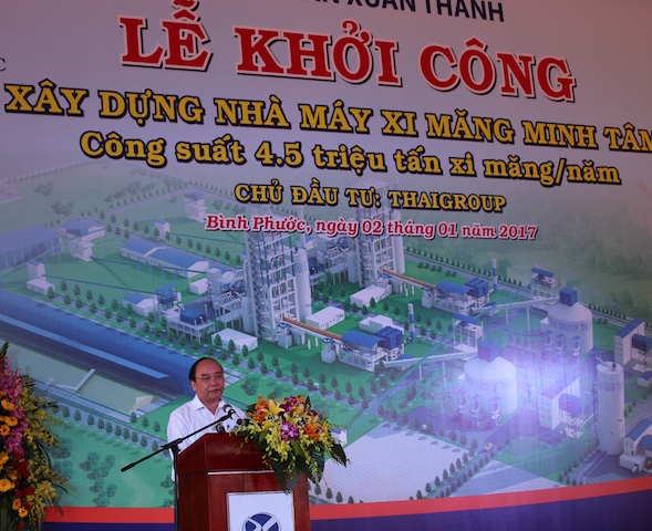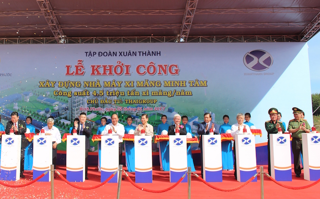 nguyên lãnh đạo, lãnh đạo bấm nút khởi công xây dựng nhà máy xi măng Minh Tâm