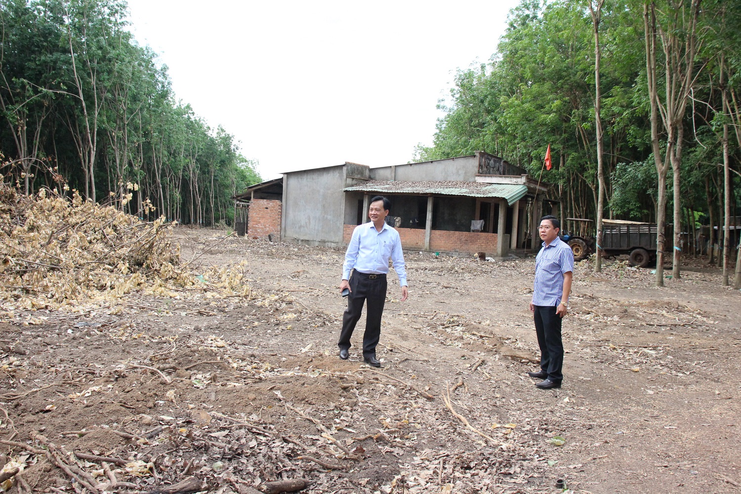 Lãnh đạo huyện Phú Riềng kiểm tra việc giải phóng mặt bằng các tuyến đường giao thông tại xã Long Tân.