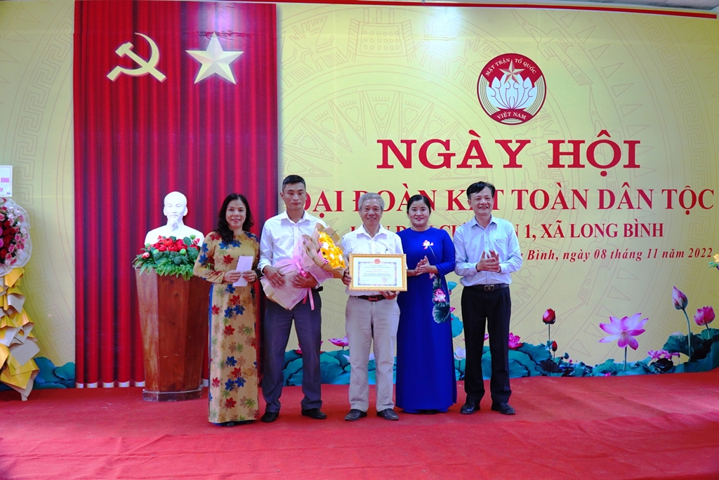 Nhân kỷ niệm 92 năm Ngày truyền thống Mặt trận Tổ quốc Việt Nam (18-11-1930 - 18-11-2022), chiều 8-11, đồng chí Trần Tuệ Hiền, Phó Bí thư Tỉnh ủy, Chủ tịch UBND tỉnh đến dự Ngày hội đại đoàn kết toàn dân tộc ở khu dân cư thôn 1, xã Long Bình, huyện Phú Riềng. Tham dự ngày hội còn có lãnh đạo ban, ngành của tỉnh. Về phía huyện có TUV, Bí thư Huyện ủy Nguyễn Thị Xuân Hòa; Phó Bí thư Huyện ủy, Chủ tịch UBND huyện Lê Anh Nam; các đồng chí trong Ban Thường vụ Huyện ủy, HĐND, UBMTTQ Việt Nam huyện, xã Long Bình và đông đảo nhân dân thôn 1 cùng dự. Ngày hội là dịp để các cấp, các ngành và toàn thể nhân dân ôn lại truyền thống của MTTQVN, biểu dương sức mạnh khối đại đoàn kết toàn dân tộc. Đồng thời, cũng là dịp tổng kết, đánh giá kết quả thực hiện cuộc vận động “Toàn dân đoàn kết xây dựng nông thôn mới, đô thị văn minh” và biểu dương, tôn vinh các tập thể, cá nhân, hộ gia đình có nhiều thành tích trong thực hiện các chủ trương của Đảng, chính sách, pháp luật của Nhà nước, góp phần xây dựng khu dân cư đoàn kết, cùng nhau xây dựng đời sống văn hóa và xây dựng nông thôn mới. Thôn 1, xã Long Bình hiện có 390 hộ dân với 1.689 nhân khẩu, năm 2022 thôn có 98,5% hộ đạt gia đình văn hóa, 5 năm liền đạt khu dân cư văn hóa. Hiện thôn không còn hộ nghèo, 13 hộ cận nghèo. Các tuyến đường giao thông nông thôn cơ bản được hoàn thiện; nhân dân đóng góp hơn 100 triệu đồng ủng hộ các phong trào, công trình phúc lợi. Tại ngày hội, thay mặt Tỉnh ủy, HĐND, UBND, Ủy ban MTTQVN tỉnh, Chủ tịch UBND tỉnh Trần Tuệ Hiền và Phó Chủ tịch Ủy ban MTTQVN tỉnh Đỗ Đại Đồng đã trao tặng quà cho khu dân cư và 2 hộ gia đình văn hóa tiêu biểu cùng 10 phần quà tặng hộ nghèo, hộ có hoàn cảnh khó khăn thôn 1, xã Long Bình. Phát biểu tại ngày hội, Chủ tịch UBND tỉnh Trần Tuệ Hiền vui mừng trước những kết quả đạt được của Đảng bộ, chính quyền và nhân dân xã Long Bình nói chung, thôn 1 nói riêng trong công tác đoàn kết, tập hợp nhân dân thực hiện các phong trào thi đua xây dựng nông thôn mới, góp phần phát triển khu dân cư văn minh, an toàn, xanh, sạch, đẹp. Để phát huy khối đại đoàn kết toàn dân tộc ở địa phương trong thời gian tới, Chủ tịch UBND tỉnh Trần Tuệ Hiền đề nghị địa phương tăng cường công tác tuyên truyền, tập hợp, đoàn kết nhân dân, phát huy truyền thống tốt đẹp, tương thân, tương ái, phát triển kinh tế và các hoạt động văn hóa, xã hội. Đồng thời, quan tâm thực hiện hiệu quả các chủ trương, chính sách về dân tộc, tôn giáo, chính sách an sinh xã hội ở địa phương, góp phần thực hiện thắng lợi nhiệm vụ phát triển kinh tế - xã hội ở địa phương./. Các hoạt động trò chơi dân gian tại ngày hội Thay mặt Tỉnh ủy, HĐND, UBND, Ủy ban MTTQVN tỉnh, Chủ tịch UBND tỉnh Trần Tuệ Hiền đã trao tặng quà cho thôn 1 Lãnh đạo tỉnh, huyện tặng quà các hộ gia đình có hoàn cảnh khó khăn Dịp này, huyện Phú Riềng đã trao quyết định công nhận khu dân cư văn hóa thôn 1, xã Long Bình 5 năm liền