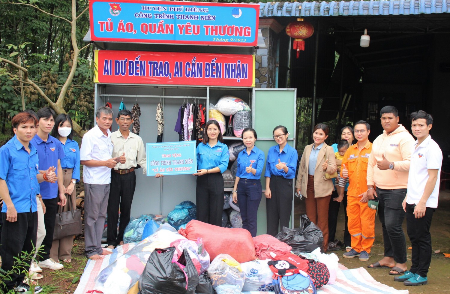 Chương trình “Hành trình tôi yêu Tổ quốc tôi” được tổ chức với nhiều hoạt động thiết thực: tặng xe đạp cho 10 “Em nuôi của Đoàn”, xe đạp do lãnh đạo Công an huyện và Đoàn cơ sở Công an huyện vận động hỗ trợ; trao tặng công trình thanh niên “Tủ áo yêu thương” cho bà con nhân dân thôn 6, xã Long Tân, đây là công trình do Hội LHTN huyện Phú Riềng xây dựng với sự chung tay đóng góp quần áo của đoàn xã Long Tân và các bạn đoàn viên, thanh niên của các đơn vị. Tiếp đó, hàng chục đoàn viên, thanh niên của Điện lực Phú Riềng đã tiến hành sửa chữa và thay thế các thiết bị điện như: bóng đèn, dây điện, cầu dao, phích cắm, ổ điện... hoàn toàn miễn phí cho 21 hộ đồng bào dân tộc X’Tiêng có nhu cầu tại thôn 6, xã Long Tân.
