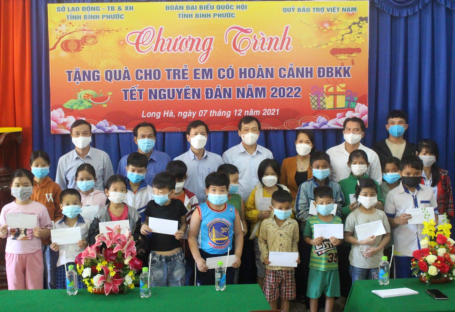 Sáng 7-12, ông Phan Viết Lượng, Phó Chủ nhiệm Ủy ban Văn hóa, Giáo dục của Quốc Hội, Đại biểu Quốc hội tỉnh Bình Phước đã thăm, tặng quà cho trẻ em có hoàn cảnh đặc biệt khó khăn trên địa bàn huyện Phú Riềng. Tại trụ sở UBND xã Long Hà, Đại biểu Quốc hội tỉnh, lãnh đạo Sở lao động Thương binh và Xã hội cùng lãnh đạo UBND huyện Phú Riềng đã trao tặng 50 phần quà, mỗi phần trị giá 500 nghìn đồng cho các em có hoàn cảnh đặc biệt khó khăn ở 2 xã Long Hà và Bù Nho. Thay mặt địa phương, ông Nguyễn Tiến Trung– HUV, Bí thư Đảng ủy, Chủ tịch UBND xã Long Hà đã cảm ơn đoànĐại biểu Quốc hội tỉnh,các cơ quan đã quan tâm, giúp đỡ, ủng hộ và dành những phần quà thiết thực trước thềm năm mới cho trẻ em có hoàn cảnh khó khăn tại địa phương. đặc biệt là trong tình hình hiện nay khi dịch Covid-19 diễn biến phức tạp, đã ảnh hưởng không nhỏ đến đời sống người dân, đặc biệt là các hộ nghèo, đồng bào dân tộc thiểu số có hoàn cảnh khó khăn./.