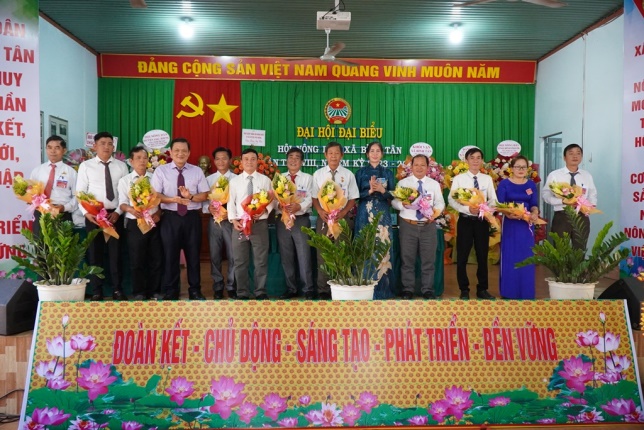 Ngày 22-2, Hội nông dân xã Bình Tân tổ chức Đại hội Đại biểu lần thứ VIII, nhiệm kỳ 2023 – 2028. Đây là Đại hội điểm cấp xã đầu tiên của Phú Riềng, Đại hội sẽ đánh giá kết quả công tác Hội và phong trào nông dân nhiệm kỳ 2018- 2023; đề ra phương hướng, mục tiêu, nhiệm vụ công tác hội và phong trào nông dân nhiệm kỳ 2023 – 2028. Đồng chí Trần Thị Hồng, Ủy viên Ban Thường vụ Hội Nông dân tỉnh; TUV, Bí thư Huyện ủy Nguyễn Thị Xuân Hòa và Phó Bí thư Thường trực Huyện ủy, Chủ tịch HĐND huyện Nguyễn Quốc Soài và UVBTV, Trưởng ban Dân vận, Chủ tịch UBMTTQ Việt Nam huyện về dự. Lãnh đạo Đảng ủy 10 xã, hội nông dân 10 xã cùng 63 đại biểu chính thức, đại diện cho hơn 842 hội viên dự đại hội. Nhiệm kỳ 2018- 2023, Hội cơ sở và các chi, tổ Hội trong xã đã nỗ lực phấn đấu thực hiện thắng lợi Nghị quyết Đại hội Hội nông dân xã lần thứ VII đề ra. Các phong trào thi đua của Hội tiếp tục được phát triển cả chiều rộng lẫn chiều sâu góp phần vào việc phát triển kinh tế, xã hội và công cuộc xây dựng nông thôn mới huyện, xã đồng thời giữ vững an ninh chính trị ở khu vực nông thôn. Tổ chức Hội từ cơ sở đến các chi, tổ Hội từng bước trưởng thành, vững mạnh, hàng năm có 90% chi hội, 85% tổ hội đạt tiêu chuẩn vững mạnh; đội ngũ cán bộ hội được kiện toàn, cơ bản đáp ứng yêu cầu trong tình hình mới. Điều đó khẳng định tổ chức Hội thực sự là nòng cốt của phong trào nông dân và là chủ thể trong công cuộc xây dựng nông thôn mới của địa phương. Nhiệm kỳ qua, Hội Nông dân xã phát triển được 195 hội viên mới, nâng tổng số hội viên 842 hội viên. Toàn xã hiện có 4 chi hội nghề nghiệp và 2 hợp tác xã; từ 5 hộ hội viên nông dân nghèo năm 2018, hiện nay không còn gia đình hội viên thuộc hộ nghèo, hiện còn 5 hộhội viên nông dân cận nghèo; phối hợp mở 42 lớp, có trên 2.100 lượt hội viên tham dự; hội viên nông dân đóng góp các nguồn quỹ tương trợ giúp nhau hơn 1,3 tỷ đồng, cho 85 hội viên vay phát triển kinh tế; vận động cán bộ hội viên, nông dân đóng góp trên 2 tỷ đồng xây dựng NTM.. Đại hội đã bầu ban chấp hành nhiệm kỳ mới gồm 11 đồng chí, đồng chí Mai Xuân Tý tiếp tục được tín nhiệm bầu giữ chức Chủ tịch Hội Nông dân xã Bình Tân, nhiệm kỳ 2023-2028./. Ra mắt ban chấp hành nhiệm kỳ mới TUV, Bí thư Huyện ủy Nguyễn Thị Xuân Hòa và Phó Bí thư Thường trực Huyện ủy, Chủ tịch HĐND huyện Nguyễn Quốc Soài tặng quà chúc mừng đại hội