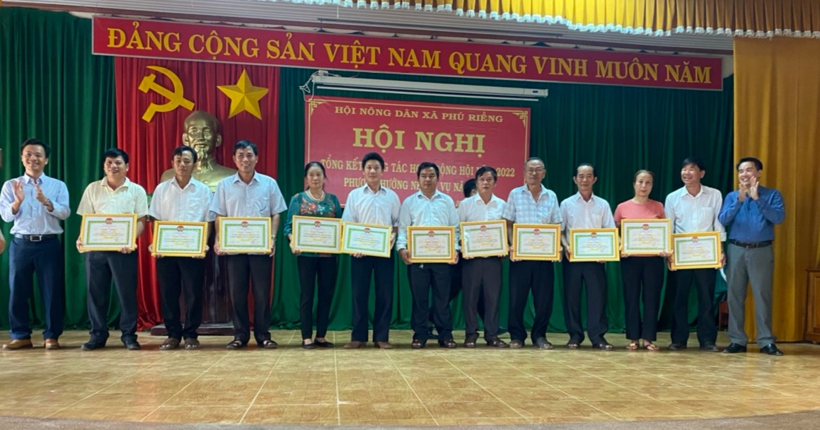 Trong năm 2022, các cấp Hội Nông dân xã Phú Riềng tích cực triển khai thực hiện có hiệu quả công tác Hội và phong trào nông dân theo kế hoạch đề ra. Trong đó, chú trọng giao chỉ tiêu thi đua năm 2022 cho các hội viên nông dân 11 thôn trên địa bàn xã để triển khai thực hiện. Đẩy mạnh phong trào nông dân thi đua sản xuất, kinh doanh giỏi, đoàn kết giúp nhau làm giàu và giảm nghèo bền vững, trong đó có nhiều mô hình sản xuất, kinh doanh đem lại hiệu quả cao. Đặc biệt năm 2022 hội đã thành lập 01 tổ hội nghề nghiệp “Trồng điều năng suất cao” tại thôn Phú Thuận gồm 10 thành viên với tổng diện tích 25ha. Phối hợp cùng UBND xã thành lập 01 HTX Sầu Riêng Đoàn Kết gồm 8 thành viên với tổng diện tích 18,3 ha Ngoài ra trong năm Hội đã lập hồ sơ và giải ngân 300 triệu từ nguồn Quỹ HTND huyện cho 12 hội viên nông dân thôn Phú Thuận. Giải ngân 10 triệu từ nguồn Quỹ HTND xã cho 01 hội viên thôn Phú Thịnh. Riêng công tác phát triển quỹ hội tổng quỹ hội hiện nay đã được 249.900.000 đồng, đã giải ngân cho 19 hội viên vay phát triển kinh tế. Đối với Phong trào nông dân thi đua sản xuất kinh doanh giỏi, đoàn kết giúp nhau làm giàu và giảm nghèo bền vững, trong năm 11/11 chi hội với 531/769 HVND đã đăng ký gương sản xuất kinh doanh giỏi các cấp (đạt 69% trên tổng số hội viên). Phát biểu tại Hội nghị, đồng chí Nguyễn Quang Tích – HUV – Chủ tịch hội Nông dân huyện đánh giá cao sự nỗ lực của Hội nông dân, cán bộ và hội viên Hội Nông dân xã Phú Riềng đã đoàn kết giúp đỡ, chia sẻ kinh nghiệm để triển khai thực hiện tốt nhiệm vụ trong năm 2022. Đồng thời, nhấn mạnh nhiệm vụ trong năm 2023 là hết sức quan trọng, đòi hỏi Hội nông dân và hội viên Hội nông dân xã Phú Riềng cần tập trung thực hiện tốt hơn nhiệm vụ năm 2023, trong đó chú trọng nhân rộng các mô hình sản xuất, kinh doanh giỏi đã đem lại hiệu quả kinh tế cao. Thường xuyên củng cố, kiện toàn tổ chức Hội ở các thôn trong sạch, vững mạnh. Nhân dịp tổng kết công tác Hội nông dân xã Phú Riềng đã khen thưởng 04 tập thể và 11 cá nhân có thành tích trong phong trào công tác Hội.