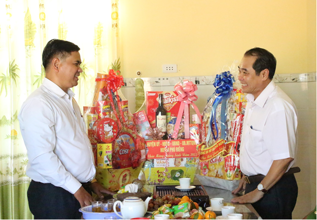 Nhân dịp Lễ Giáng sinh 2022, sáng 21/12, Phó Bí thư Thường trực Huyện ủy, Chủ tịch HĐND huyện Nguyễn Quốc Soài dẫn đầu đã đến thăm, tặng quà và chúc mừng Giáo xứ Phú Riềng, Chi hội thánh Tin lành Phú Thuận (xã Phú Riềng). Cũng trong sáng 21-12, Phó Bí thư, Chủ tịch UBND huyện Phú Riềng Lê Anh Nam dẫn đầu đã đi thăm, chúc mừng giáng sinh các giáo họ Long Hưng và Giáo họ Suối Minh. Tại xã Long Hà, đoàn lãnh đạo huyện do UVBTV, Trưởng Ban Dân vận Huyện ủy, Chủ tịch UBMTTQ Việt Nam huyện Phú Riềng Phạm Hồng Công làm Trưởng đoàn cùng với lãnh đạo xã đã đến thăm, tặng quà và chúc mừng Chi hội Phu Mang 1, Phu Mang 3 và Chi hội Bù Ka 2 Trước đó, chiều 20-12, UV BTV, Phó Chủ tịch UBND huyện Bùi Văn Hiếu là trưởng đoàn, đã thăm, chúc mừng Giáo họ Long Tân; Chi hội Tin Lành Trà Cố, xã Long Tân; Giáo xứ Bù Nho và Giáo sứ Giuse, xã Bù Nho. Tại các nơi đến thăm, các đồng chí lãnh đạo huyện Phú Riềng đã tặng quà và chúc các linh mục, mục sư, chức sắc, chức việc và bà con giáo dân đón một mùa giáng sinh an lành, hạnh phúc và ngập tràn niềm vui. Đồng thời mong các Giáo xứ, Chi hội Tin lành tiếp tục tuyên truyền, vận động bà con giáo dân thực hiện tốt chủ trương của Đảng, chính sách pháp luật Nhà nước, sống “tốt đời, đẹp đạo”. Đại diện các giáo xứ, chi hội Tin lành đã cảm ơn, bày tỏ niềm vui trước sự quan tâm của lãnh đạo huyện Phú Riềng. Đồng thời khẳng định sẽ tiếp tục giữ vững mối đoàn kết tôn giáo, tô thắm nghĩa đồng bào, cùng nhau xây dựng quê hương Phú Riềng ngày càng giàu đẹp, văn minh./. Phó Bí thư Thường trực Huyện ủy Nguyễn Quốc Soài thăm, tặng quà và chúc mừng Giáo xứ Phú Riềng