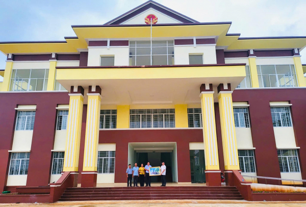 Lãnh đạo huyện Phú Riềng chúc mừng xã Phú Trung đưa vào sử dụng trụ sở làm việc mới.