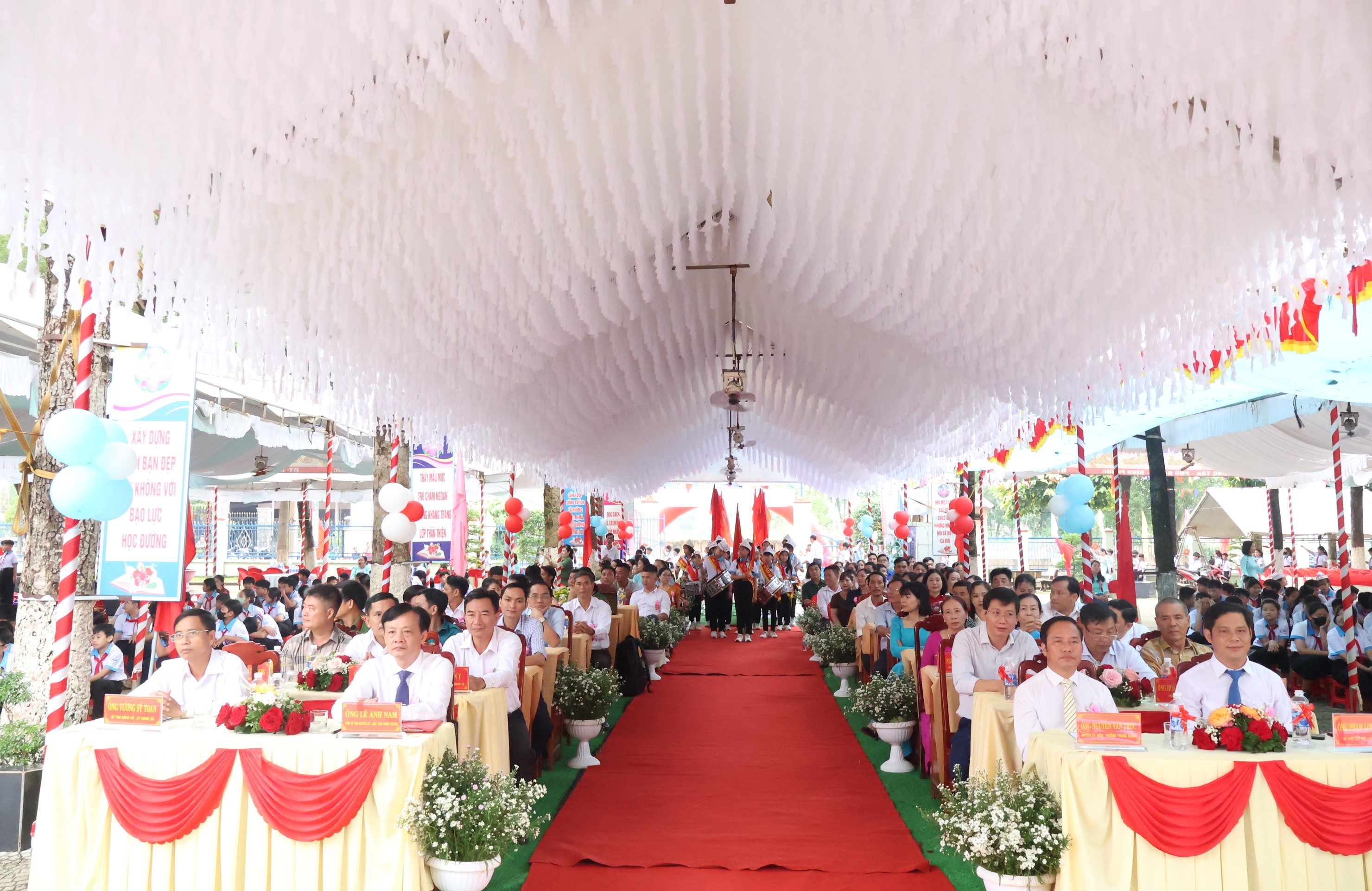 Sáng 5-9, trường THCS Long Tân, xã Long Tân tổ chức Lễ khai giảng năm học 2024-2025 và Lễ đón nhận bằng công nhận đạt chuẩn Quốc gia mức độ 1, đạt kiểm định chất lượng giáo dục cấp độ 2. Phó Bí thư, Chủ tịch UBD huyện Lê Anh Nam; Trưởng phòng Giáo dục và Đào tạo Nguyễn Văn Trúc, lãnh đạo các phòng, ban, đơn vị, xã Long Tân cùng dự. Năm học này, trường THCS Long Tân đón hơn 180 học sinh vào lớp 6 nâng tổng số học sinh toàn trường lên hơn 580 em, được bố trí ở 16 lớp học. Trải qua 27 năm hình thành và phát triển trường THCS Long Tân luôn tập trung vào chất lượng giáo dục, từng bước khẳng định vị trí của mình, thầy và trò nhà trường luôn nỗ lực hoàn thành tốt nhiệm vụ được giao. Giai đoạn 2018-2023 trường được đầu tư xây dựng 12 phòng học lầu và nhiều công trình phụ trợ đáp ứng được nhu cầu dạy và học. Đến nay 38 cán bộ, giáo viên, nhân viên nhà trường đều đạt chuẩn. Hàng năm, tỷ lệ học sinh: chuyên cần đạt 98% trở lên, hoàn thành chương trình tốt nghiệp THCS trên 97%. Chất lượng giáo dục toàn diện từng bước được nâng lên: Tỷ lệ học sinh lên lớp bình quân đạt trên 96%; 47 % học sinh đạt Học lực khá giỏi; 98 % học sinh xếp loại hạnh kiểm khá tốt. Trong chu kì đánh giá 2018-2023 học sinh giỏi cấp Huyện đạt 110 em, cấp Tỉnh đạt 36 em, các phong trào văn hóa- thể thao đạt nhiều giải cao. Tập thể nhà trường được UBND huyện, UBND tỉnh tặng nhiều bằng khen và giấy khen. Nhận được sự tin tưởng rất lớn của phụ huynh và nhân dân ở địa phương. Đến dự và chúc mừng, Phó Bí thư, Chủ tịch UBND huyện Phú Riềng Lê Anh Nam ghi nhận sự nỗ lực, cố gắng của tập thể nhà trường qua các thế hệ, qua đó đề nghị nhà trường tiếp thực hiện tốt nhiệm vụ năm học, duy trì và nâng chất các tiêu chí trường đạt chuẩn quốc gia, chú trọng chất lượng giáo dục và kỹ năng sống cho học sinh, xây dựng trường học sáng- xanh- sạch- đẹp- an toàn. Dịp này, được sự ủy quyền của Chủ tịch UBND tỉnh, Phó Bí thư, Chủ tịch UBND huyện Phú Riềng Lê Anh Nam đã trao Bằng công nhận đạt chuẩn quốc gia mức độ 1, và đạt kiểm định chất lượng giáo dục cấp độ 2 cho nhà trường. Ngoài ra, UBND huyện Phú Riềng, nhiều tập thể, cá nhân và các cựu học sinh của trường đã có nhiều phần quà gửi tặng các em học sinh có hoàn cảnh khó khăn và quỹ khuyến học của nhà trường. Thừa ủy quyền của Chủ tịch UBND tỉnh, Phó Bí thư, Chủ tịch UBND huyện Phú Riềng Lê Anh Nam đã trao Bằng công nhận đạt chuẩn quốc gia mức độ 1, và đạt kiểm định chất lượng giáo dục cấp độ 2 cho trường THCS Long Tân.Các đại biểu dự Lễ khai giảng và Lễ đón bằng công nhận đạt chuẩn Quốc gia mức độ 1, đạt kiểm định chất lượng giáo dục cấp độ 2 của trường THCS Long Tân.