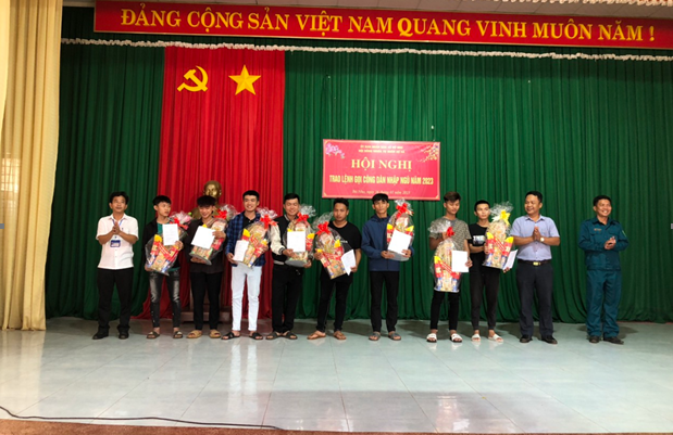Sáng 16/1, UBND xã Bù Nho tổ chức hội nghị trao lệnh gọi công dân nhập ngũ năm 2023. Tham dự, có đồng chí Nguyễn Đình Quang - UVBTV Huyện ủy, Bí thư, Chủ tịch UBND, Chủ tịch Hội đồng NVQS xã. Toàn cảnh hội nghị Thực hiện nhiệm vụ tuyển chọn và gọi công dân nhập ngũ năm 2023, ngay từ đầu năm, Hội đồng NVQS xã đã phối hợp với các ban, ngành, đoàn thể làm tốt công tác tham mưu cho cấp Ủy, chính quyền địa phương trong triển khai thực hiện nhiệm vụ công tác tuyển chọn và gọi công dân nhập ngũ năm 2023, đảm bảo chặt chẽ, đúng quy trình. Lãnh đạo xã trao lệnh và tặng quà cho các thanh niên Phát biểu tại hội nghị, đồng chí Nguyễn Đình Quang - UVBTV Huyện ủy, Bí thư, Chủ tịch UBND chúc mừng các thanh niên chuẩn bị lên đường nhập ngũ được mạnh khỏe, hoàn thành tốt nhiệm vụ mà Đảng, Nhà nước, Nhân dân và Quân đội giao. Đồng chí đề nghị các thành viên Hội đồng NVQS xã, các ban ngành, đoàn thể xã Bù Nho quan tâm, tạo mọi điều kiện thuận lợi đối với gia đình và công dân nhập ngũ; làm tốt công tác tham mưu UBND xã tổ chức hội trại tòng quân, Lễ giao nhận quân năm 2023 vui tươi, nghiêm túc, an toàn, đúng theo quy định. Dịp này, UBND xã tổ chức trao lệnh gọi nhập ngũ cho 18 thanh niên tham gia nghĩa vụ quân sự. Nguồn tin: Dương Nga: