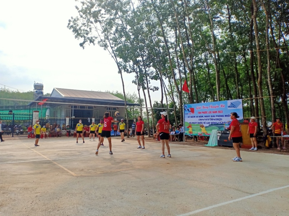Hòa trong không khí tưng bừng phấn khởi của cả nước hướng tới chào mừng kỷ niệm 48 năm ngày giải phóng Miền Nam thống nhất đất nước (30/4/1975-30/4/2023) và kỷ niệm 137 năm ngày Quốc tế Lao động (01/5/1886-01/5/2023). Trong 02 ngày 29-30/4/2023, Chi hội Phụ nữ thôn Phú Tân, xã Phú Riềng phối hợp tổ chức thi đấu bóng chuyền nữ của 04 tổ trong thôn. Đến dự buổi Lễ khai mạc có đồng chí Phạm Thị Thanh Thủy – Chủ tịch Hội LHPN xã Phú Riềng, các đồng chí đại diện chi bộ ban thôn, ban lãnh đạo nhà máy Tôn Phước Lộc. Tham gia giải có 04 đội bóng với hơn 50 vận động viên, cổ động viên đến từ các tổ trên địa bàn thôn, trong đó các đội bóng chuyền thi đấu theo thể thức vòng tròn tính điểm. Nhứng pha bóng đẹp của các đội thi đến từ chi hội phụ nữ thôn Phú Tân Trao giải cho các đội thi