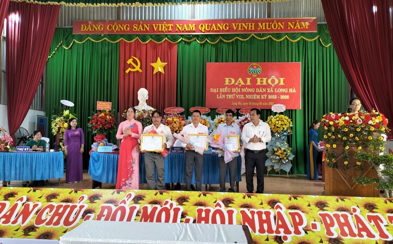 Với chủ đề “Đoàn kết – Đân chủ - Đổi mới – Hội nhập – Phát triển”, ngày 9/3, Hội Nông dân xã Long Hà tổ chức Đại hội Đại biểu khóa VIII, nhiệm kỳ 2023 - 2028. Dự Đại hội có đồng chí Nguyễn Thị Hương – HUV, Chủ tịch Hội Nông dân huyện, đồng chí Nguyễn Tiến Trung – HUV, Bí thư Đảng ủy xã, lãnh đạo các ban, ngành, đoàn thể xã và 94 đại biểu chính thức cùng dự. Nhiệm kỳ 2018-2023, cơ sở Hội đã tập trung tuyên truyền, vận động nông dân thực hiện các chỉ thị, nghị quyết của Đảng, chính sách pháp luật của Nhà nước và nghị quyết của Hội. Công tác củng cố, kiện toàn bộ máy tổ chức Hội luôn được quan tâm; công tác phát triển hội viên được chú trọng. Phong trào nông dân thi đua sản xuất kinh doanh giỏi, đoàn kết giúp nhau làm giàu và giảm nghèo bền vững được tiếp tục phát triển cả chiều rộng và chiều sâu. Nhiệm kỳ qua, Hội kết nạp mới được 500 hội viên, nâng tổng số hội viên toàn xã là 1.467 hội viên. Số hộ hội viên khá, giàu 1.140 hộ chiếm 77,7%. Hội nông dân xã xây dựng 04 mô hình thí điểm trồng cây ăn trái hữu cơ, làm cơ sở để xây dựng sản phẩm OCOP; thành lập 1 chi hội nghề nghiệp, 07 tổ hội nghề nghiệp, 02 Hợp tác xã nông nghiệp. Vận động hội viên nông dân sản xuất kinh doanh giỏi các cấp với số tiền hơn 3,3 tỷ đồng tương trợ giúp đỡ 176 lượt hội viên nghèo, khó khăn phát triển sản xuất; vận động hội viên nông dân hiến hàng ngàn m2 đất, đóng góp hàng chục tỷ đồng, trên 2.000 ngày công để sửa chữa và làm mới hàng chục km đường láng nhựa, đường bê tông, xây dựng, sửa chữa nhà văn hóa... Đại hội đã bầu ban chấp hành nhiệm kỳ mới gồm 17 người, trong đó ông Nguyễn Văn Hưng tiếp tục được tín nhiệm bầu giữ chức Chủ tịch Hội nông dân xã Long Hà, nhiệm kỳ 2023-2028. Chủ tịch Hội Nông dân huyện Nguyễn Thị Hương tặng hoa chúc mừng Đại hội Khen thưởng cho các tập thể cá nhân có thành tích trong công tác hội