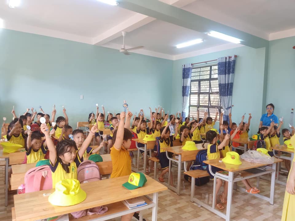 Học sinh lớp Lá Trường mẫu giáo Hướng Dương tham gia hoạt động trải nghiệm