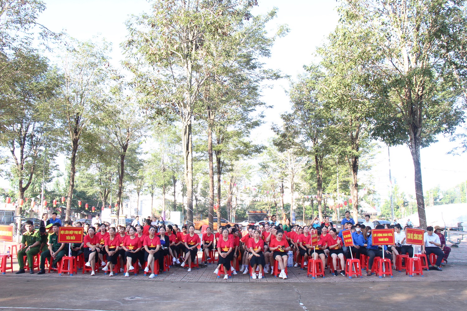 Các đại biểu dự lễ Phát động. UV BTV, Phó Chủ tịch UBND huyện, Trưởng Ban Vì sự tiến bộ phụ nữ huyện Phú Riềng Bùi Văn Hiếu phát biểu tại Lễ phát động. Bà Nguyễn Thị Thanh- HUV, Chủ tịch Hội LHPN huyện Phú Riềng phát biểu hưởng ứng tại Lễ Phát động.