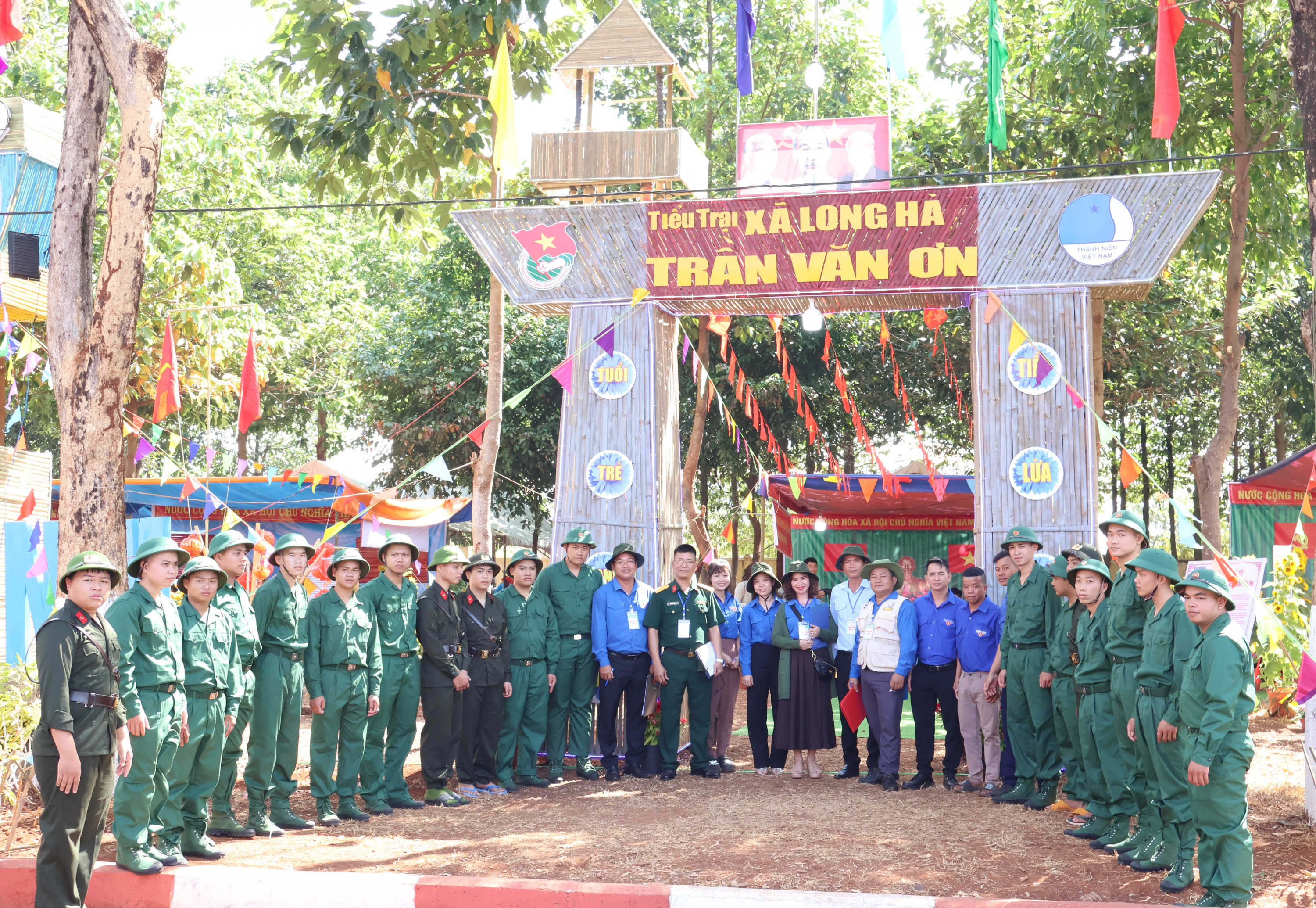 Nhằm tạo khí thế sôi nổi, cỗ vũ tinh thần thanh niên trước khi lên đường nhập ngũ, Hội trại tòng quân huyện Phú Riềng năm 2025 đã diễn ra với nhiều hoạt động vui tươi nhưng không kém phần ý nghĩa, bồi đắp thêm tình yêu quê hương, đất nước của thế hệ trẻ, qua đó thu hút được đông đảo các bạn đoàn viên, thanh niên cùng tham gia. Năm nay, trại chỉ huy cùng với 10 tiểu trại huyện Phú Riềng đã tạo ấn tượng mạnh bởi sự hoành tráng, từ sức sáng tạo, lòng yêu quê hương, đất nước và tâm huyết của mình, với những nguyên, vật liệu sẵn có, dễ tìm như thân, lá, rễ cây, bìa catton, các vật dụng hàng ngày... đoàn viên, thanh niên các đơn vị đã khéo léo tạo dựng những cổng trại đẹp mắt, phù hợp với tên trại, từ đó truyền tải nhiều thông điệp ý nghĩa của mỗi đơn vị, địa phương. Không thể bỏ qua là nội dung nói chuyện truyền thống, những câu chuyện lịch sử hết sức hào hùng, kiên trung của thế hệ cha anh đã tái hiện lại một thời gian khó, máu lửa nhưng với tinh thần dân tộc, tinh thần chiến đấu bất diệt, sự đoàn kết, lòng quả cảm, thế hệ cha anh ta đã không tiếc xương máu bảo vệ bằng được độc lập dân tộc, tự do cho nhân dân. Qua những câu chuyện lịch sử ấy, tuổi trẻ Phú Riềng đã được bồi đắp lòng yêu nước, quyết tâm hoàn thành tốt nhiệm vụ, cống hiến cho quê hương. Ở phần thi rung chuông vàng, bằng sự hiểu biết của mình, thí sinh đã trả lời các câu hỏi trắc nghiệm có nội dung liên quan đến sự hình thành và phát triển của huyện Phú Riềng, tỉnh Bình Phước. Vì ngang sức, ngang tài giữa thí sinh các đội, nên phần thi đã diễn ra hết sức hấp dẫn, dưới sự cổ vũ nhiệt tình của các cổ động viên. Chiến sĩ khỏe và văn nghệ là hai phần thi được mong chờ trong chuỗi các hoạt động của Hội trại, các thí sinh đã phối hợp nhịp nhàng trong chơi trò chơi truyền bột. Những ca khúc, điệu múa thể hiện lòng yêu nước, yêu địa phương, ca ngợi tổ Quốc, ca ngợi Bác Hồ... được mang đến Hội trại đã góp phần làm nên những sắc màu sinh động, vui tươi, giúp các bạn trẻ có cơ hội giao lưu, thể hiện năng khiếu, từ đó tạo khí thế vui tươi, đoàn kết trong hội trại. Các đơn vị thiết kế cổng trại rất đẹp mắt, mang tính sáng tạo và nhiều ý nghĩa.