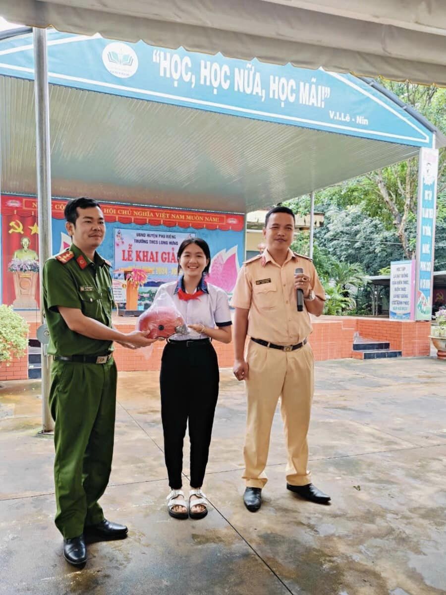 Đội cảnh sát giao thông, Công an huyện Phú Riềng vừa phối hợp Hội CCB xã, Công an xã Long Hưng tổ chức buổi tuyên truyền Luật giao thông đường bộ tại trường THCS Long Hưng. Tại buổi tuyên truyền, cán bộ, giáo viên và hơn 300 em học sinh của trường đã được thông tin nhanh về tình hình tai nạn giao thông trên địa bàn tỉnh Bình Phước nói chung và huyện Phú Riềng nói riêng, trong đó các vụ tai nạn giao thông có liên quan đến học sinh; những kiến thức cơ bản về Luật giao thông đường bộ; một số lỗi và mức xử phạt vi phạm hành chính trong lĩnh vực giao thông đường bộ; công tác an ninh trật tự với khẩu hiệu "Cổng trường em: Xanh, sạch, đẹp, an toàn". Qua buổi tuyên truyền trang bị thêm cho học sinh một số kiến thức, hiểu biết pháp luật, nâng cao ý thức trách nhiệm chấp hành nghiêm Luật giao thông đường bộ. Tặng mũ bảo hiểm cho các em học sinh trả lời đúng câu hỏi.Ra mắt mô hình “Cổng trường an toàn giao thông”.